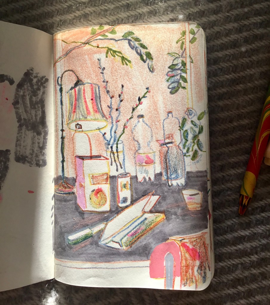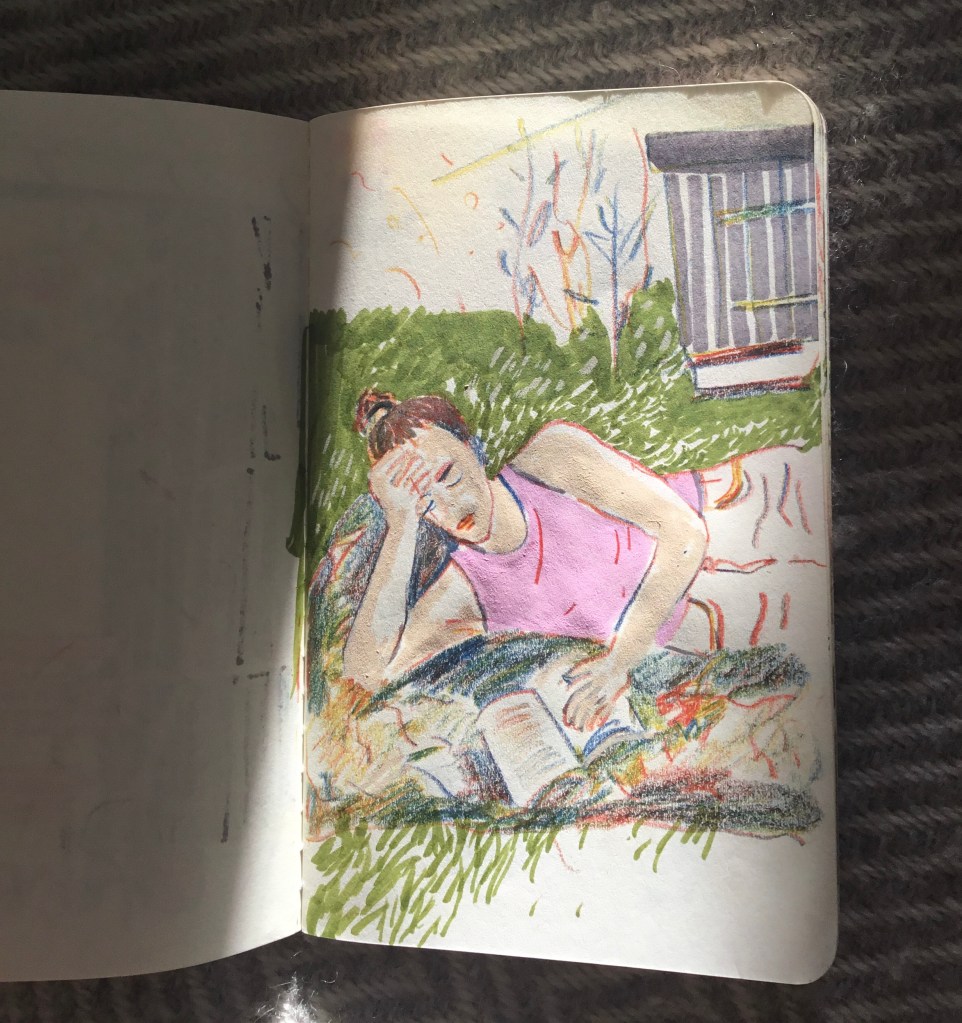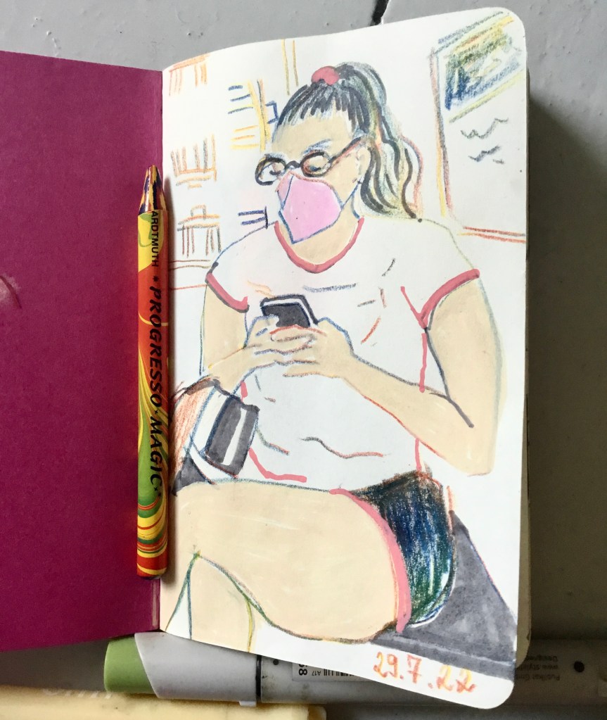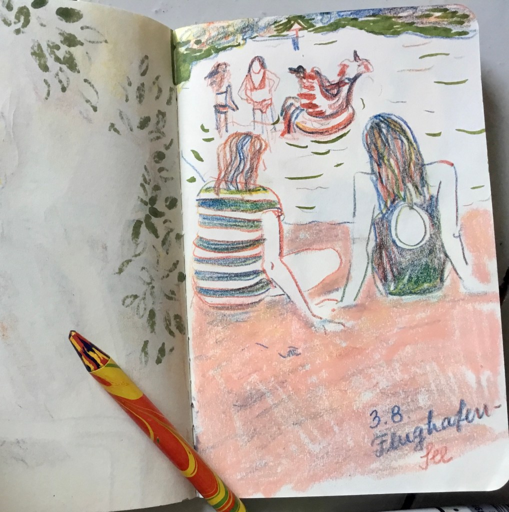 From my summer sketchbook. Used #Progressomagic, #acrylicmarker and #gelcrayon. Missing swimming in the lake a lot…