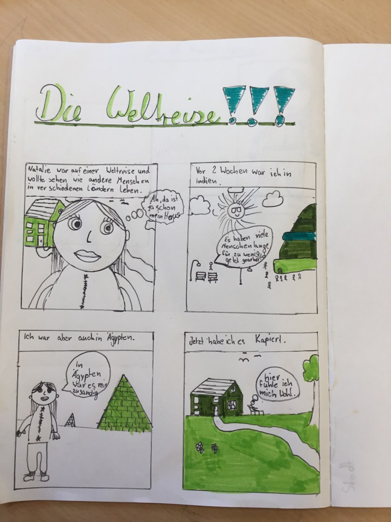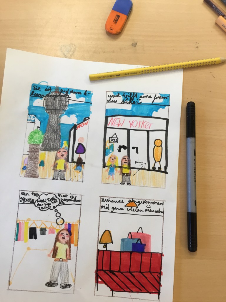 Wir zeichnen Comics und lernen mehr über Charactere und Einstellungen.